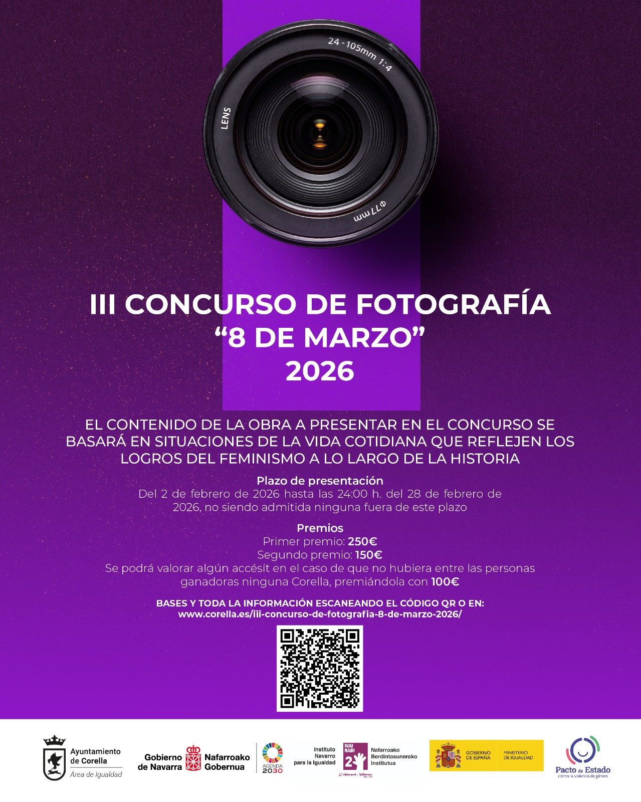 El Área de Igualdad del Ayuntamiento de Corella organiza el III Concurso de Fotografía 8 de marzo 2026