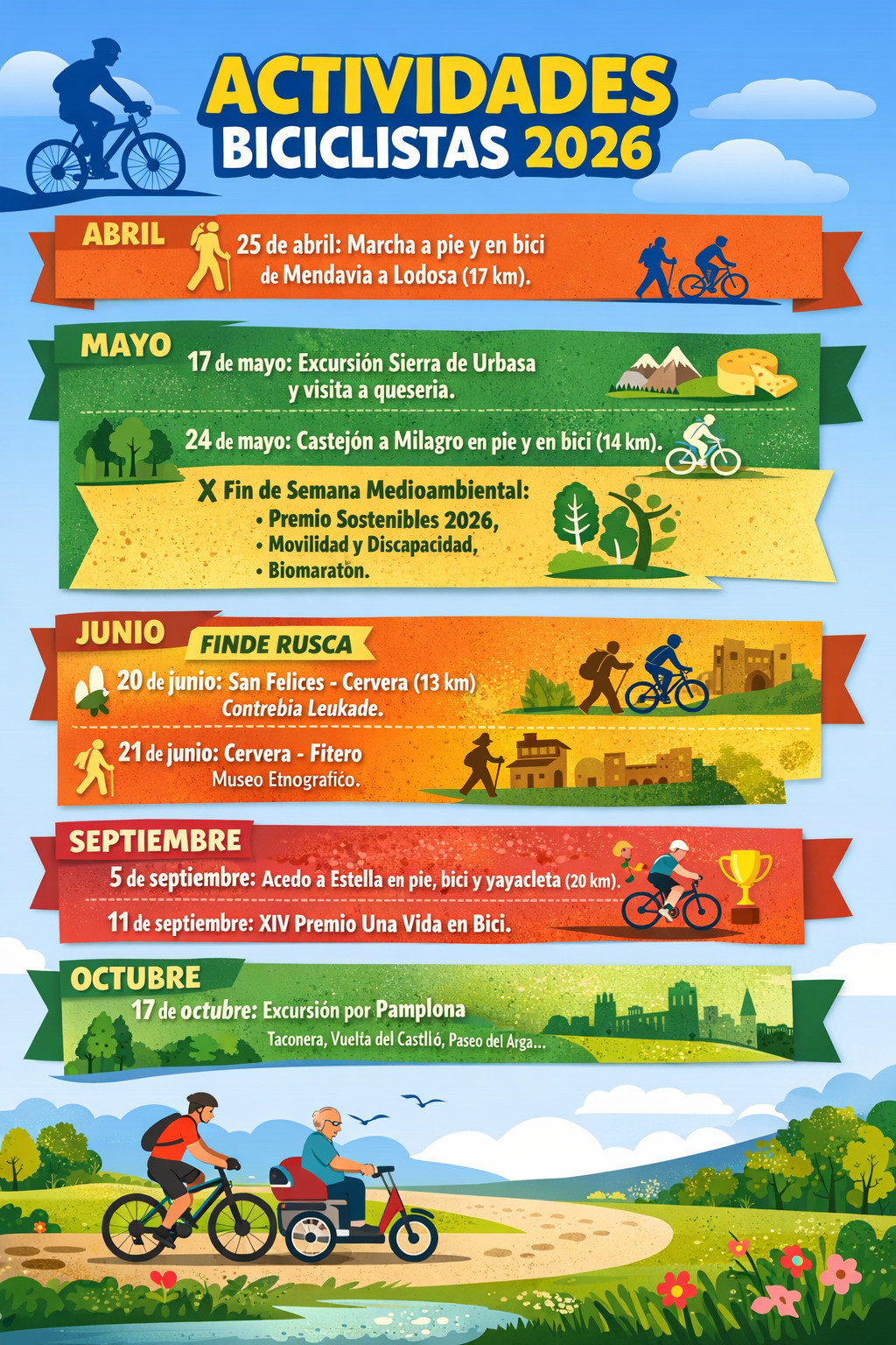 ¡Hola biciclistas y simpatizantes! Llega la primavera y con ella el buen tiempo y las ganas de pedalear y caminar. Hemos preparado cinco excursiones g...