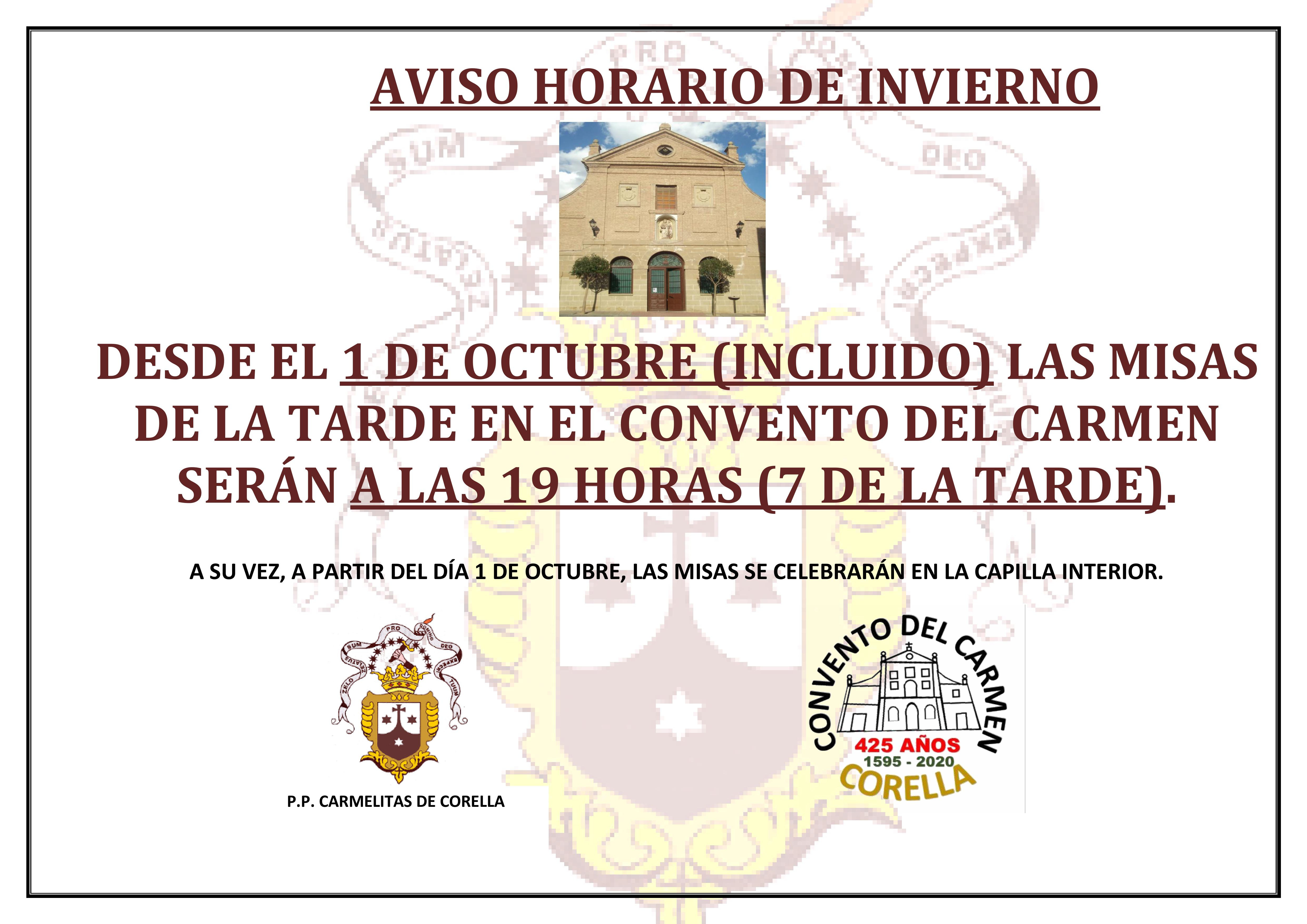 Desde el 1 de octubre, las misas de la tarde en el convento del Carmen serán a las 19:00 horas.