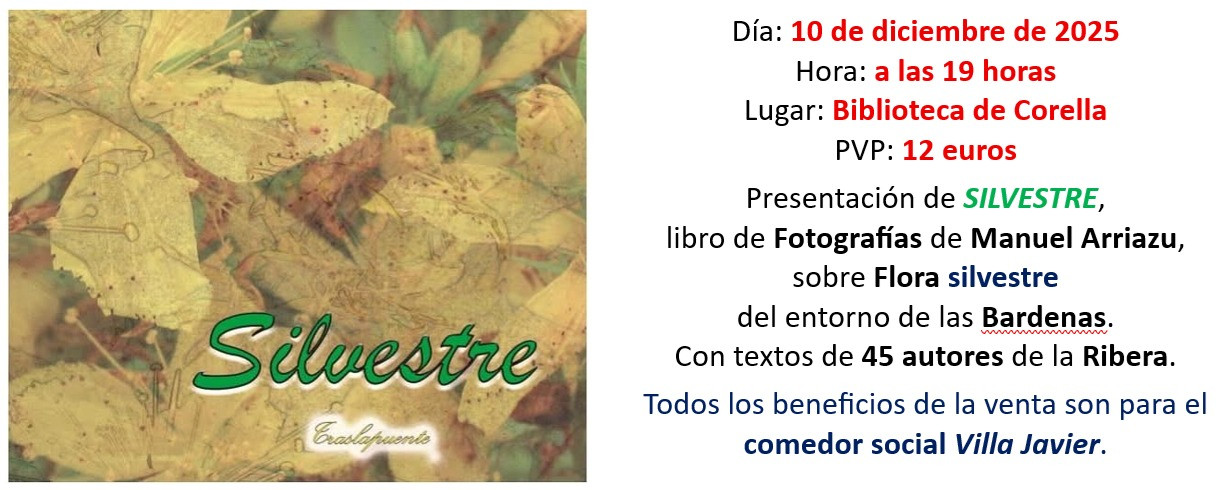 "Silvestre", libro de fotografías de Manuel Arriazu sobre flora silvestre del entorno de las Bardenas y textos de 45 autores de la Ribera. Beneficios de la venta en favor del comedor social Villa Javier.